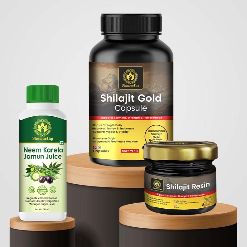 At Shuwasthy, we believe that true wellness begins with nature’s finest remedies. Rooted in the ancient wisdom of Ayurveda, our products are carefully crafted to promote balance, vitality, and long-term health. From pure Shilajit capsules and Shilajit resin that enhance strength and stamina, to Karela Jamun powder and Neem Karela juice that support healthy digestion and blood sugar management, each formulation is designed to nurture your body naturally.
